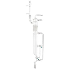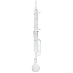 Extraction glassware varies in form and function, as there are many applications for extraction methods. Soxhlet extractors are a common apparatus that allow for continuous extraction with a small amount of recycled solvent. This cheap and low-maintenance method makes soxhlet extraction popular in a wide variety of laboratories.