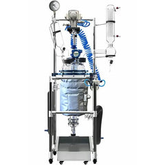 Introducing the Ai R-series single glass reactors bench top reactors. Both the 2L and 5L reactor vessels can be used on the same frame, allowing for greater flexibility and customizability. Reactors are designed for synthetic reaction of different types of materials in a controlled temperature and vacuum environment. Each reactor features adjustable stirring speeds and a constant pressure feeding funnel that allows you to add material to the vessel at a uniform and controlled speed. The built-in condenser makes it possible to recover some materials, also at a controlled rate of speed.