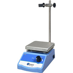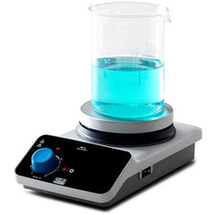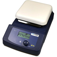 Advanced microprocessor controls with convenient turn knob allows quick, precise adjustment and maintenance of temperature. Safety indicator LED on the front panel indicates when the heating functions have been activated. With a square 7.1 in work surface, these Hotplates are compatible with a wide variety of popular sizes of borosilicate glass beakers, flasks, bottles and other vessels.