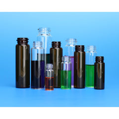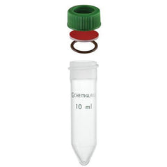 Heavy wall vial has an internal conical bottom for optimum sample retrieval and flat base which provides added mechanical strength and bench stability. Vials are graduated at the intervals listed. With 14/10 threaded outer joint. Supplied complete with open-top screw cap, PTFE faced septa and Viton O-ring.