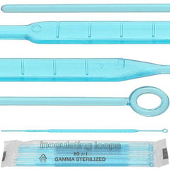These sterile disposable plastic loops and needles are designed for use in quantitative procedures such as sampling, urine counts and serial dilutions, as well as for bacterial inoculation. Because they are pre-sterilized and designed for single use, there is no risk of cross contamination and no need for flaming. They are flexible enough for streaking, yet rigid enough for subsurface inoculation.